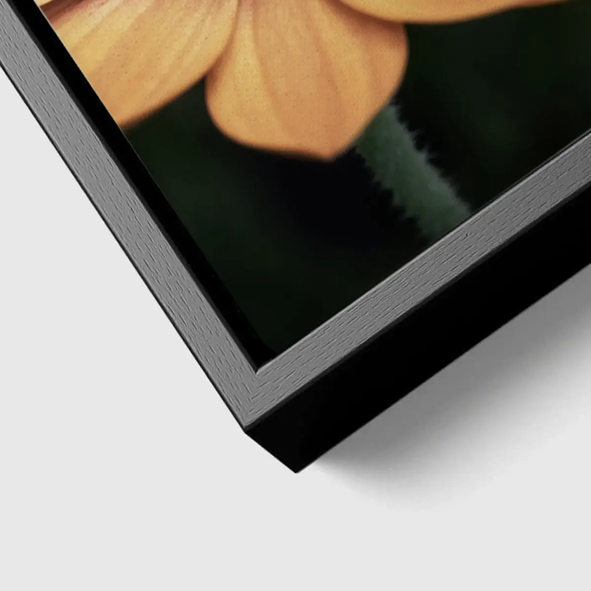 De baklijst geeft een canvas product een luxe en afgewerkte uitstraling. Het frame is zwart en heeft een zichtbare houtnerf structuur.