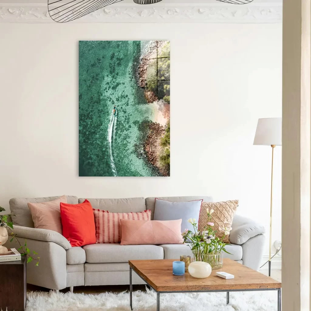Het schilderij op glas heeft een moderne look en past goed in mijn interieur. Tevreden met mijn aankoop.