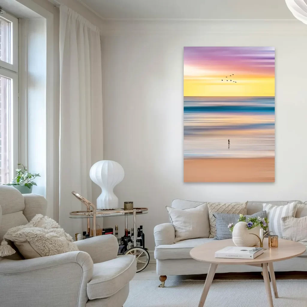 Ik heb een schilderij gekocht voor mijn slaapkamer. Het staat er mooi en geeft een rustige sfeer. Ik ben tevreden met mijn keuze.