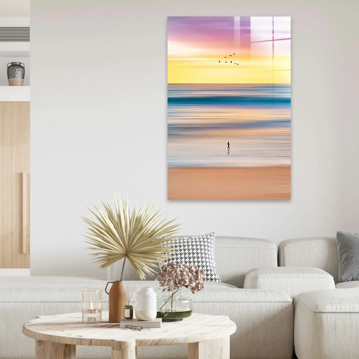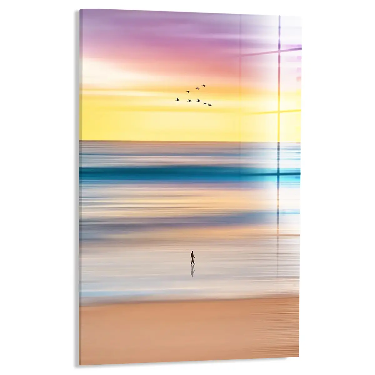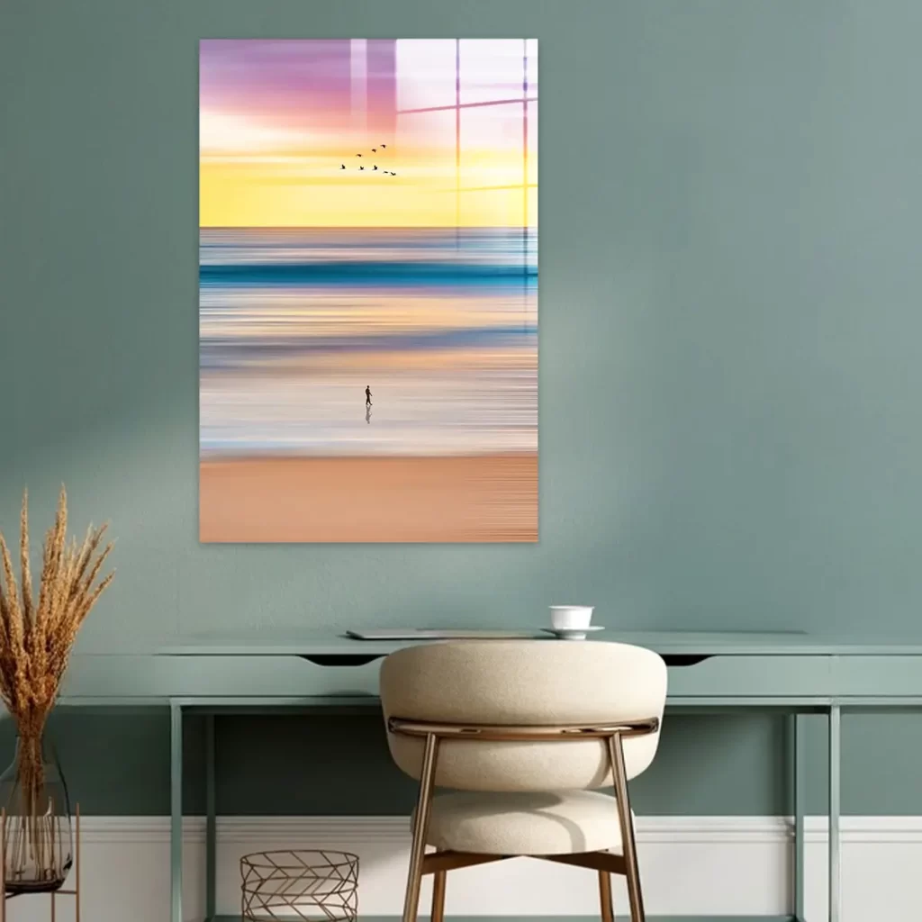 Het schilderij op glas heeft een moderne look en past goed in mijn interieur. Tevreden met mijn aankoop.