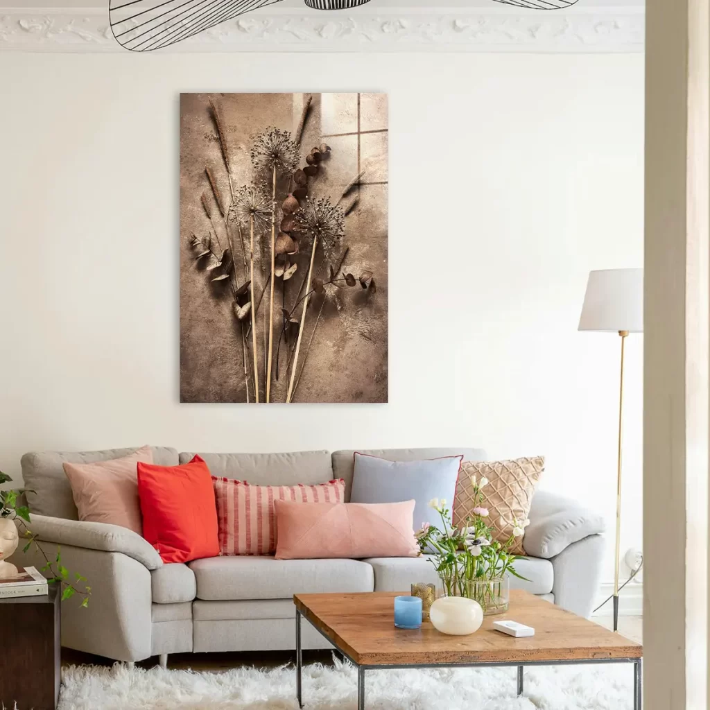 Het schilderij op glas heeft een moderne look en past goed in mijn interieur. Tevreden met mijn aankoop.