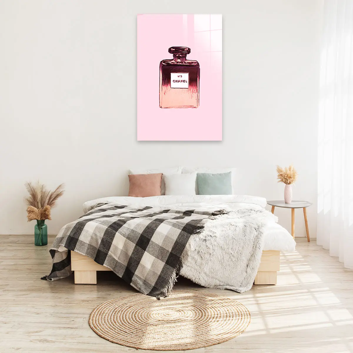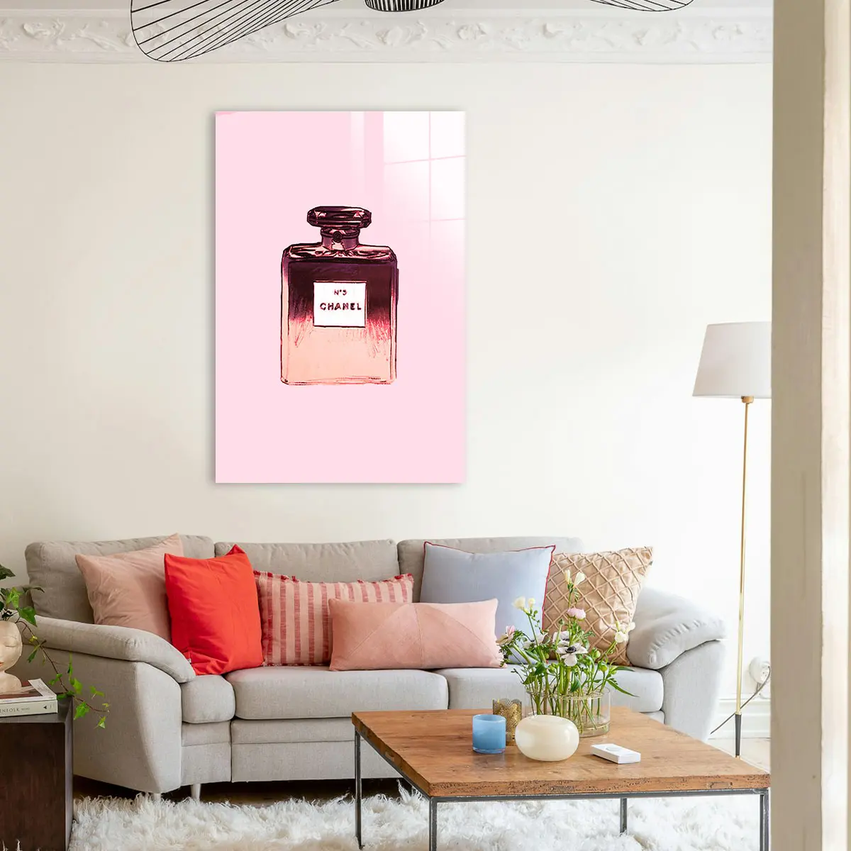 Het schilderij op glas heeft een moderne look en past goed in mijn interieur. Tevreden met mijn aankoop.