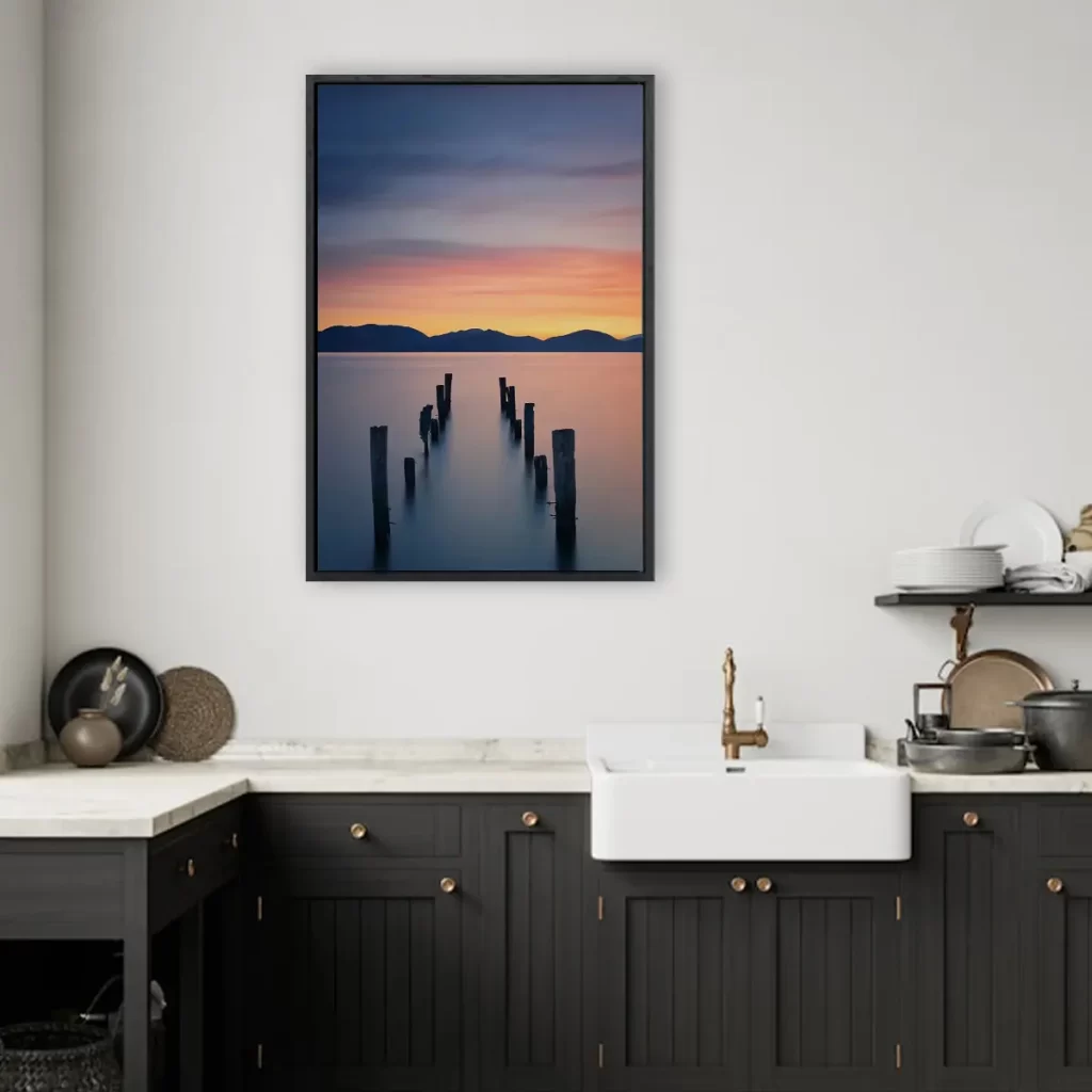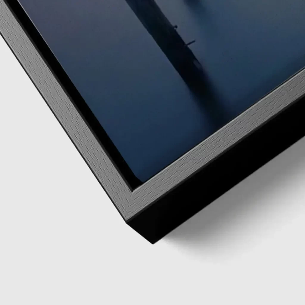 De baklijst geeft een canvas product een luxe en afgewerkte uitstraling. Het frame is zwart en heeft een zichtbare houtnerf structuur.